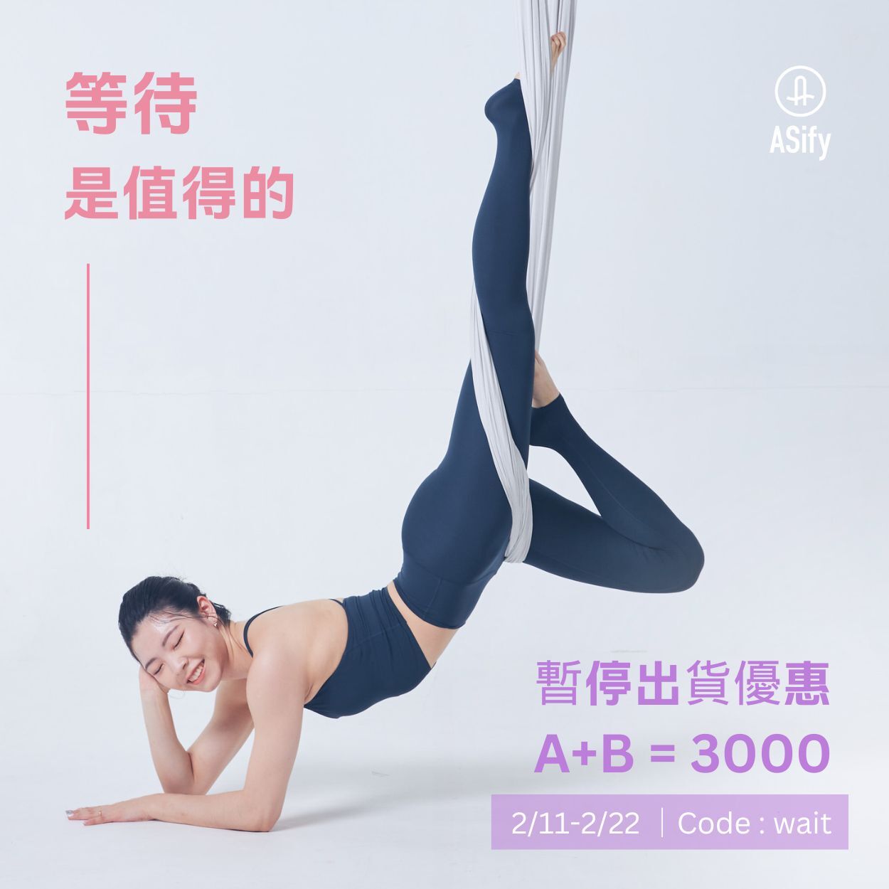從 2/11 到 2/22,ASify 官網將暫停出貨,所有包裹要到 2/23 才會陸續出發。我們深知等待心愛瑜珈服的滋味並不好受,因此決定用一種最實質的方式,補償妳這份溫柔的耐心。