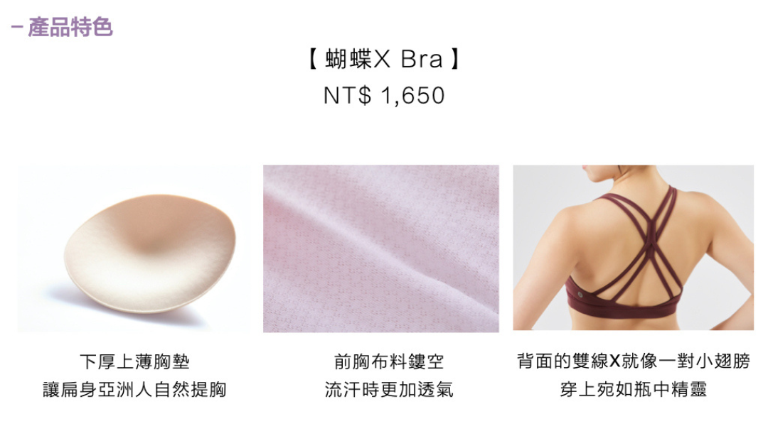 蝴蝶 X 順著肩胛骨設計,給需要更多上肢練習的妳更多穩定及支撐,空瑜、攀岩、手平衡.....從此沒有束縛。