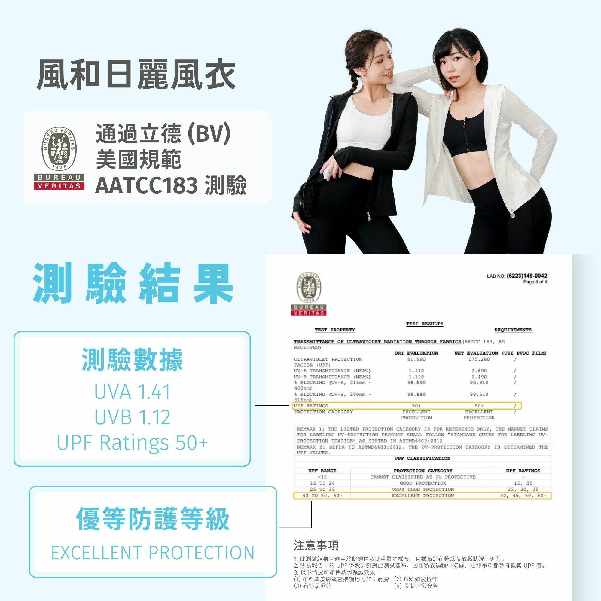 具備 抗 UV50+ 功能,並通過 美國 AATCC183 認證,